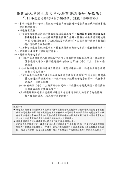 廠商評選須知(序位法)範本(本評選須知及相關表單得做必要調整並經本計畫成立之評選委員會通過)