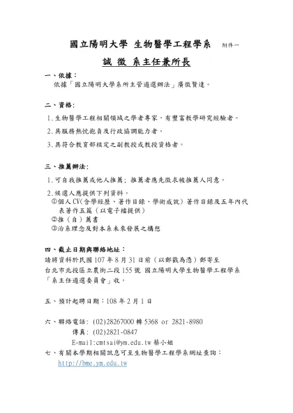 國立陽明大學 生物醫學工程學系 附件一