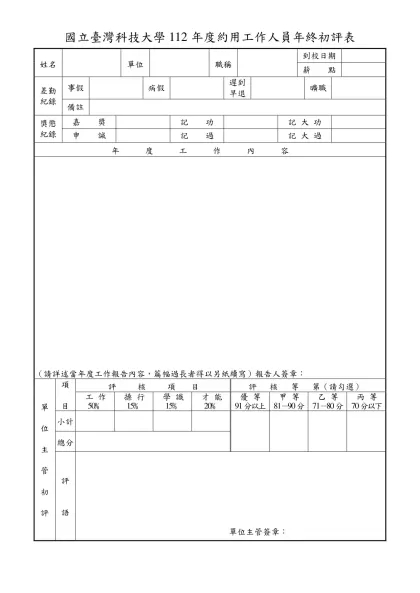 優先順序-國立臺灣科技大學112年度約用工作人員年終初評表