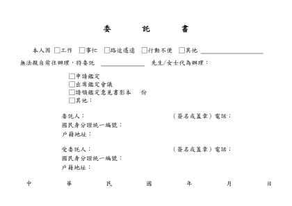 委託書-範例-委託書-本人因 □工作 □事忙 □路途遙遠 □行動不便 □其他
