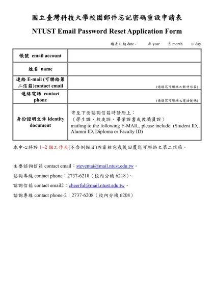 國立台灣科技大學數位教材上網申請表-國立臺灣科技大學校園郵件忘記密碼重設申請表