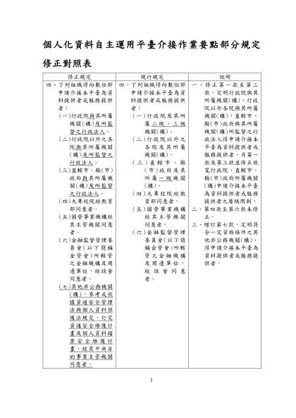 預設空白範本(writer)-個人化資料自主運用平臺介接作業要點部分規定修正對照表