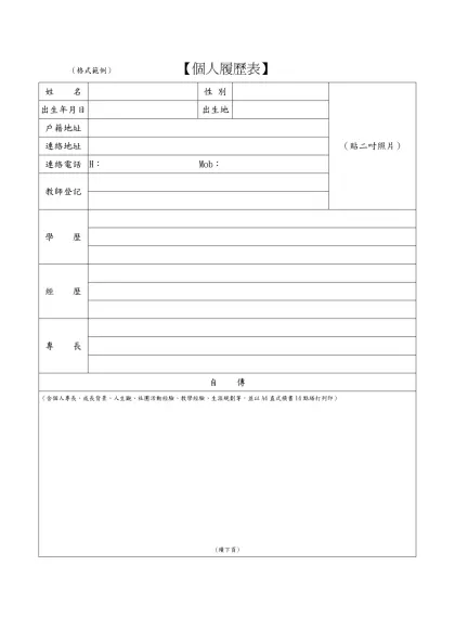 (格式範例) 【個人履歷表】-姓 名性 別(貼二吋照片)出生年月日