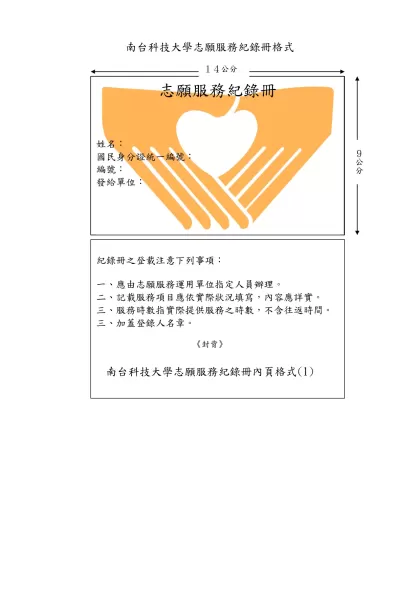 南台科技大學志願服務紀錄冊格式-《封面》《封背》南台科技大學志願服務紀錄冊內頁格式(1)