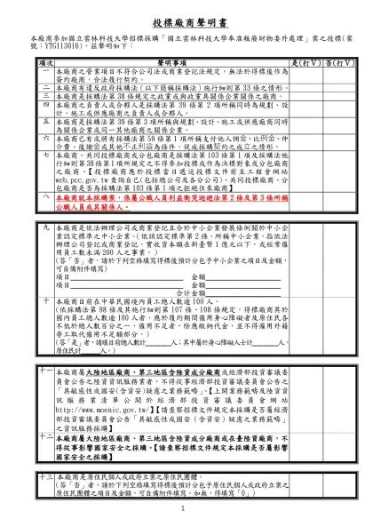 投標廠商聲明書範本-本廠商參加國立雲林科技大學招標採購「國立雲林科技大學奉准報廢財物委外處理」案之投標(案號:YTG113016),茲聲明如下: