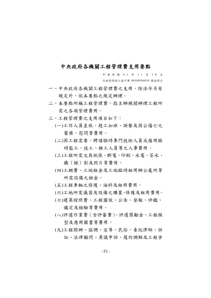 公有建築物委託建築師規劃設計監造酬金標準表 中華民國-中央政府各機關工程管理費支用要點