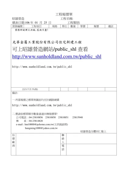 工程報價單-昭雄營造 工程名稱: 填表日期:106年 01 月 25 日 工程類別: