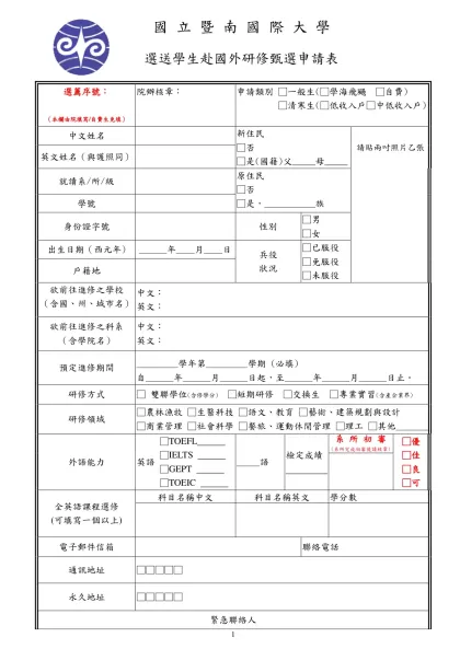 國立暨南國際大學學生參加國外交換學生甄選申請表(草)-國 立 暨 南 國 際 大 學
