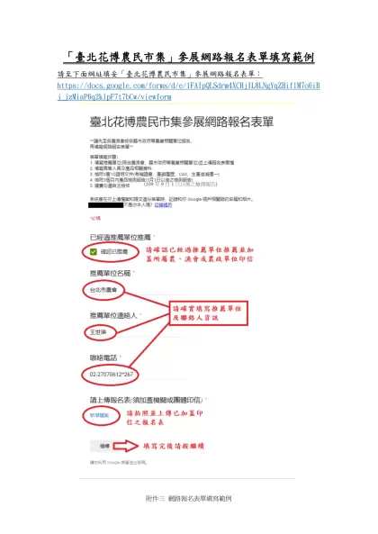「臺北花博農民市集」參展網路報名表單填寫範例