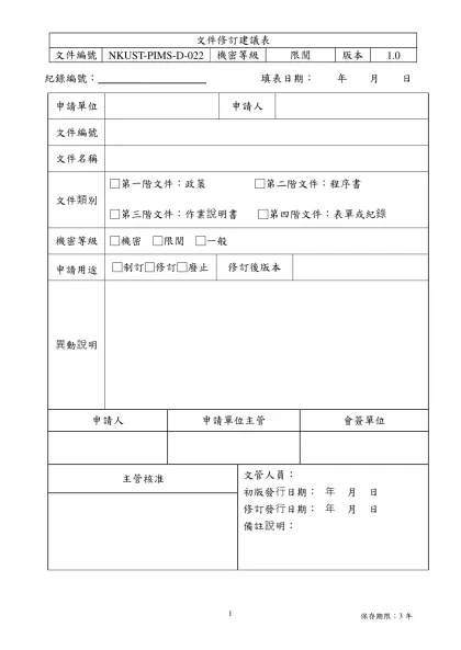 Microsoft Word - IS-D-005文件修訂建議表_範本.doc-紀錄編號:╴╴╴╴╴╴╴╴╴╴ 填表日期: 年 月 日