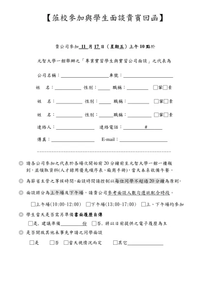 面談回函-【蒞校參加與學生面談貴賓回函】
