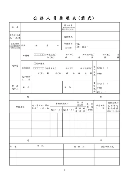 公務人員覆歷表空白表格下載-公 務 人 員 履 歷 表〈簡 式〉