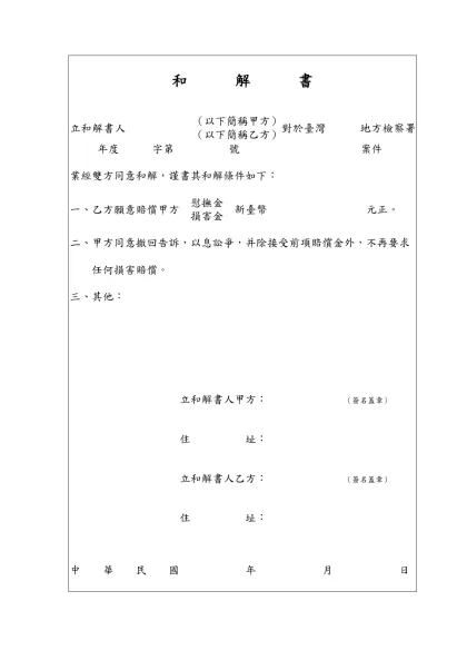 -立和解書人 對於臺灣 地方檢察署 年度 字第 號 案件