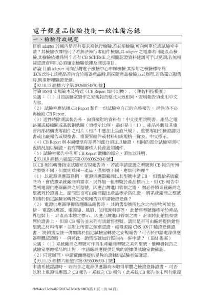 電子類產品檢驗技術一致性備忘錄-一、檢驗行政規定目前adapter於國內是否有要求須執行檢驗,若必須檢驗,可向何單位或試驗室申請?其檢驗依據為何?若無法執行零組件檢驗,具adapter之電器若可隨產品