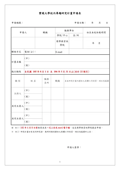 實踐大學校內專題研究計畫申請表-申請編號: 申請日期: 年 月 日