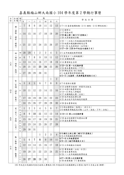 嘉義縣103學年度教育行事曆(暫列104年度各補休日