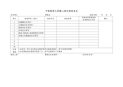 中國醫藥大學離心機定期檢查表-系所(科): 實驗室: 檢查日期: 年 月 日