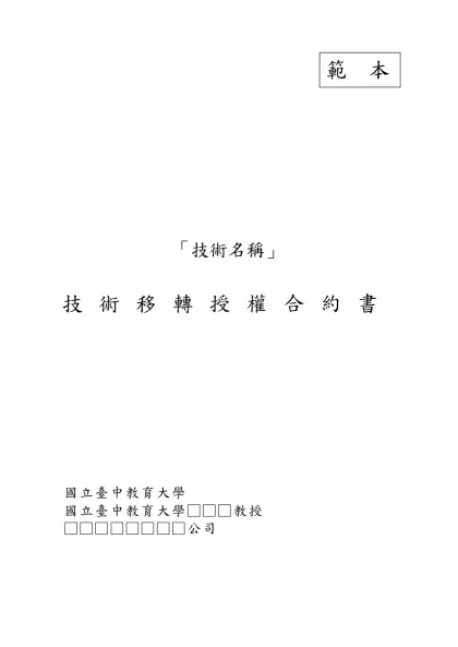 專 利 技 術 移 轉 授 權 合 約 書-「技術名稱」