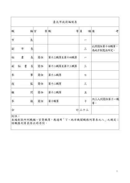 臺北市政府(秘書處)編制表-臺北市政府編制表