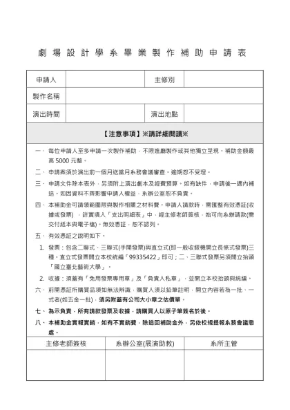 劇場設計學系畢業製作補助申請表-劇場設計學系畢業製作補助申請表