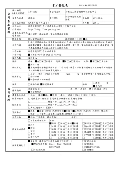 列求職登記表-求才登記表登記日期:106/08/08公 司 基 本 資 料