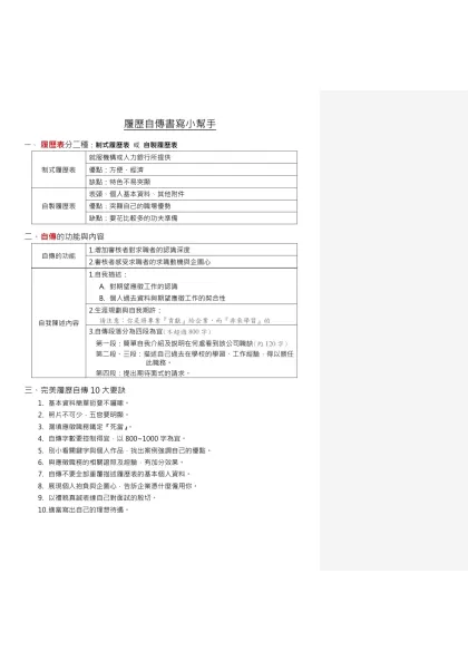 履歷自傳書寫小幫手-履歷表分二種:制式履歷表 或 自製履歷表