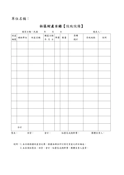 財產目錄-單位名稱:-社區財產目錄【設施設備】
