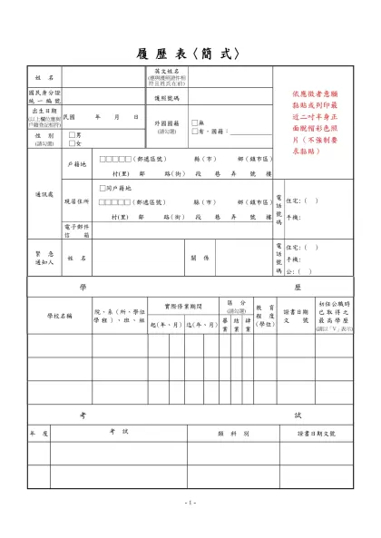 公務人員覆歷表空白表格下載-履 歷 表〈簡 式〉