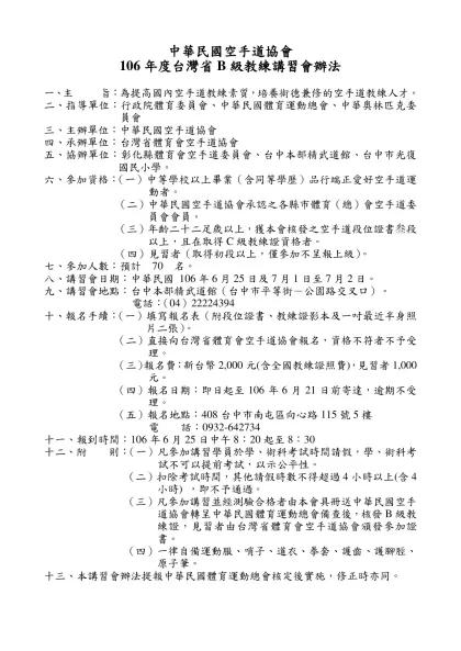 台灣省體育會空手道協會九十四年B級、C級教練講習會職員表-中華民國空手道協會