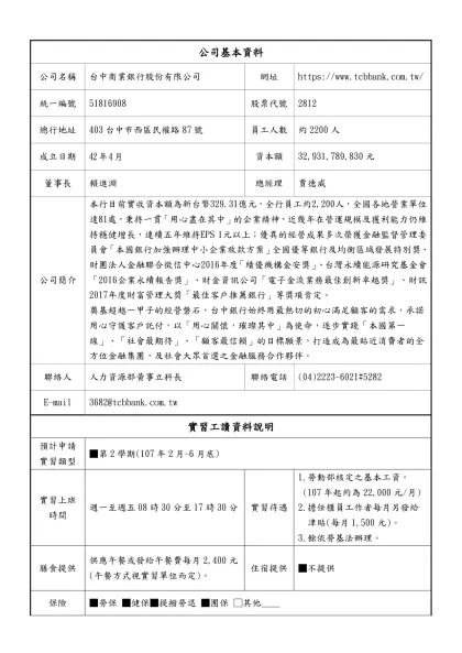 ____________________公司暑期/學期/學年制校外實習廠商資料表