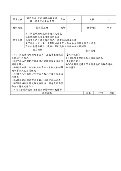 範本檔-單元名稱-單元名稱第六單元 臺灣的區域與交通