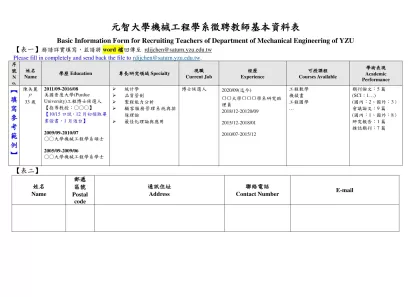 97學年度元智大學資訊傳播學系徵聘教師基本資料表