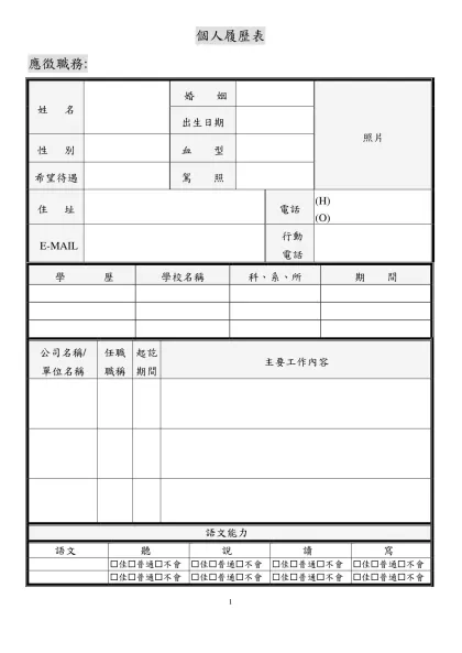 個人求職履歷表-應徵職務:姓 名婚 姻照片