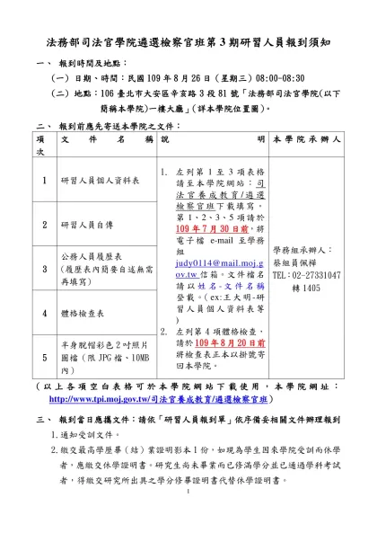 法務部司法官訓練所司法官第四十六期學員報到須知-法務部司法官學院遴選檢察官班第3期研習人員報到須知