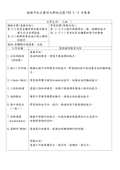 桃園市私立豐田大郡幼兒園 3、4 月教案 設計者:
