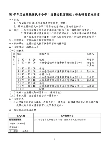 消費者教育-97學年度宜蘭縣國民中小學「消費者教育課程」發表研習實施計畫