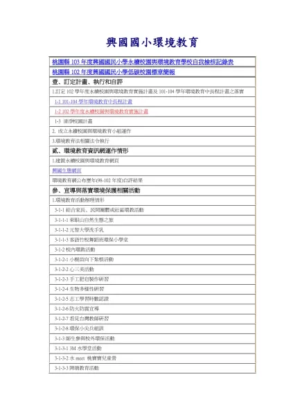 興國國小環境教育- 桃園縣103年度興國國民小學永續校園與環境教育學校自我檢核記錄表