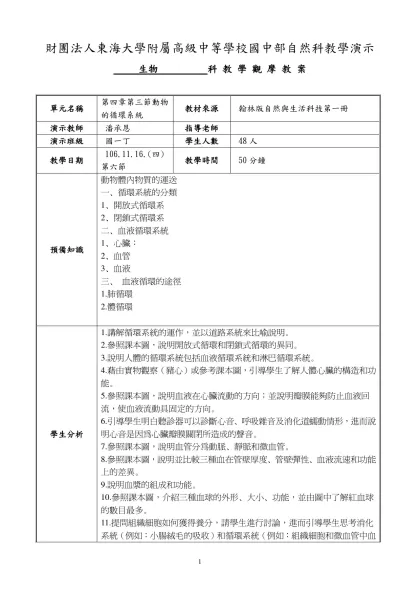數學科教學觀摩教案-財團法人東海大學附屬高級中等學校國中部自然科教學演示