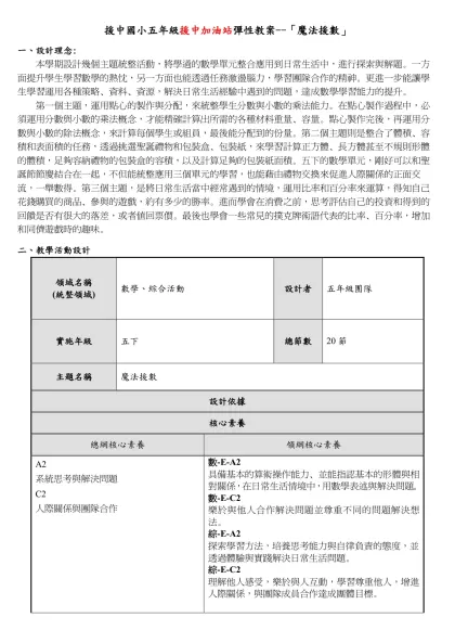 援中國小五年級援中加油站彈性教案--「魔法援數」